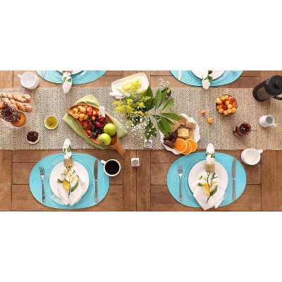 - Our placemats feature a sturdy braided woven design and round silhouette, provides a pop of color to liven up meals or gatherings.