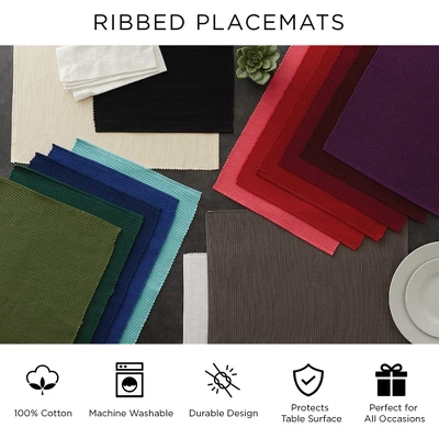 - These solid ribbed mats are a great basic to dress up into a formal meal or for something casual. Easily adds texture and interest to any table.
