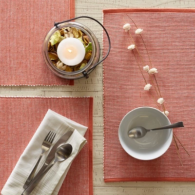 - These solid ribbed mats are a great basic to dress up into a formal meal or for something casual; Easily adds texture and interest to any table