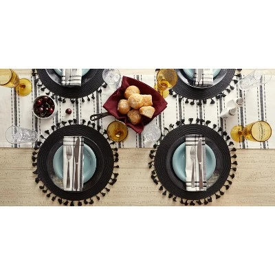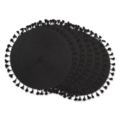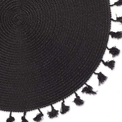 DII Tassel Embellished Placemat Set 6 Piece, Black Tassel, 15″ Dia
