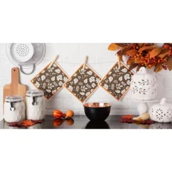 Design Imports Honey Gold Matte Retro Vine Texture Ceramic Canister Set/3