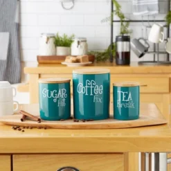 Design Imports White Coffee/Sugar/Tea Ceramic Canister Set/3