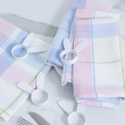 Design Imports Oh Hoppy Day Plaid Napkin And Bunny Ears Napkin Ring Set Of 4