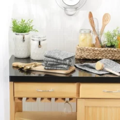 Design Imports Black/Off-White Tonal Recycled Cotton Waffle Dishtowel Set/3