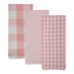 Design Imports Dishtowel Set Gingham/Buffalo Check 3 Piece, 20X30″, Pink