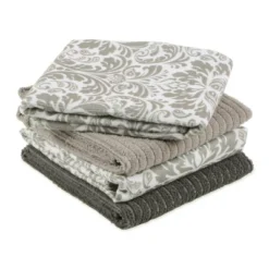 Design Imports Every Day Basic Microfiber Dishtowel Set Lattice Print 4 Piece, 16X19″, Eggplant