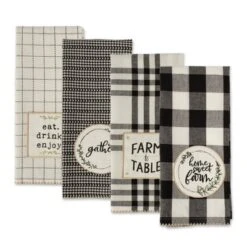 Design Imports Everyday Basic Woven Dishtowel Set 5 Piece, 18X28″, Black