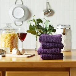 Design Imports Terry Waffle Solid Dishtowel Set 4 Piece, 15X26″, Eggplant
