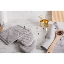 Design Imports Oven Mitt, Potholder And Dishtowel Kitchen Set 4 Piece, Apple Orchard