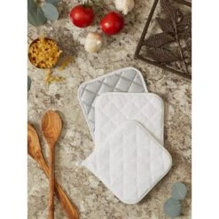 Design Imports Terry Solid Potholder Set 3 Piece Stonewash Blue 7X7″