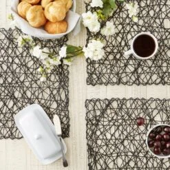 Design Imports Bark Brown Heavyweight Check Fringed Placemat Set/6