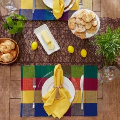 Design Imports Natural Heavyweight Check Fringed Placemat Set/6