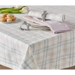 Design Imports Cottontail Garden Plaid Tablecloth, 60X84-Inch