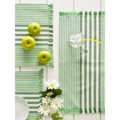DII Stripe Tassel Placemat Set 4 Piece, White & Rainbow, 13×19″