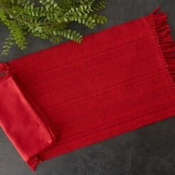 DII Variegated Fringe Placemat Set 8 Piece, Tango Red, MT 13×19″, NP 20×20″