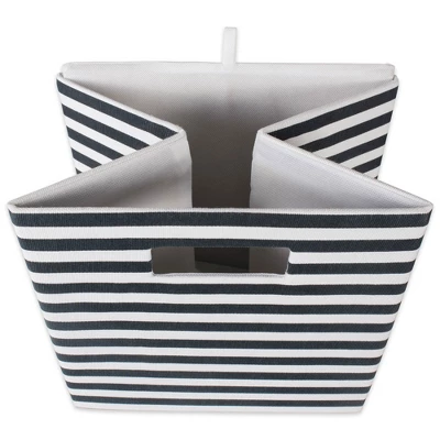 - Wrapped in polyester fabric, storage bins have a cardboard core on the sides and bottom to give shape and add structure while still allowing bins to fold flat when not in use.