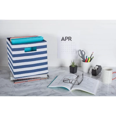- Wrapped in polyester fabric, storage bins have a cardboard core on the sides and bottom to give shape and add structure while still allowing bins to fold flat when not in use.