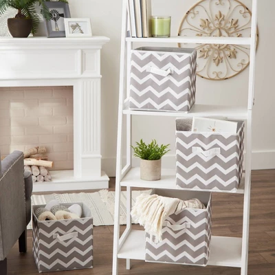 Set Of 4 11″ X 11″ X 11″ Nonwoven Polyester Square Storage Chevron Cube Gray – Design Imports