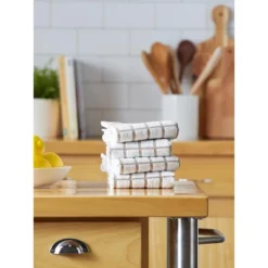 Design Imports Terry Windowpane Dishtowel Set 4 Piece, 16X26″, Stone