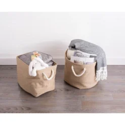 Design Imports Polyester Bin Variegated Cream Round Large 15X16X16